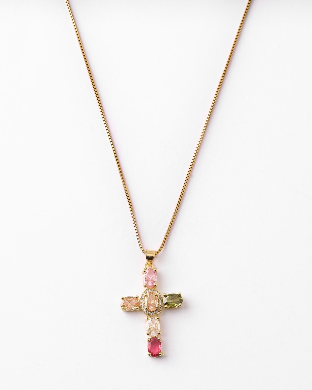 COLLAR CRUZ 38X23MM - CIRCONITAS 7X5MM - 45+2CM LARGO