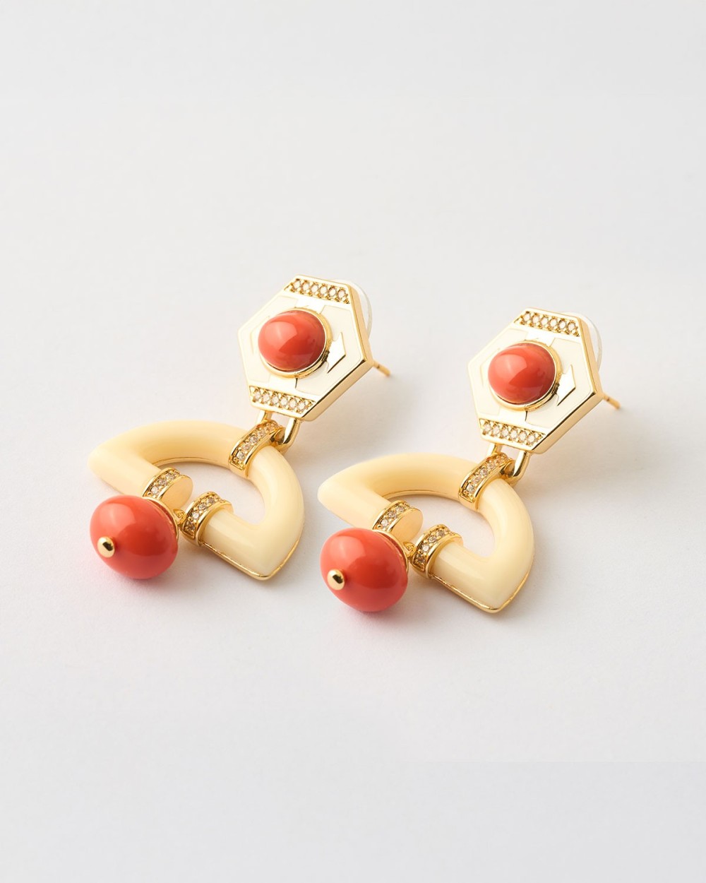 PENDIENTES ESMALTE NARANJA Y BLANCO CIRCONITAS