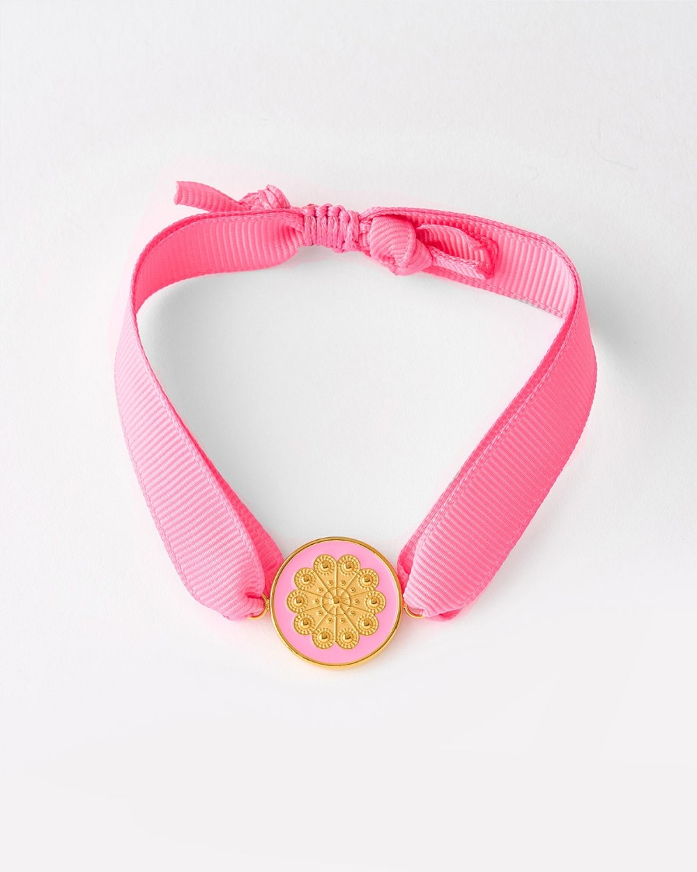PULSERA AJUSTABLE BOTON CHARRO CINTA ROSA ESMALTE ROSA