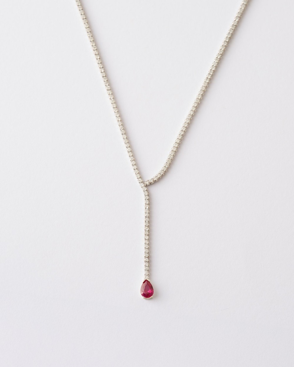 Collar Riviere Circonitas 2mm Colgante Lagrima Rubi 7x5mm - 45+3cm largo Plata