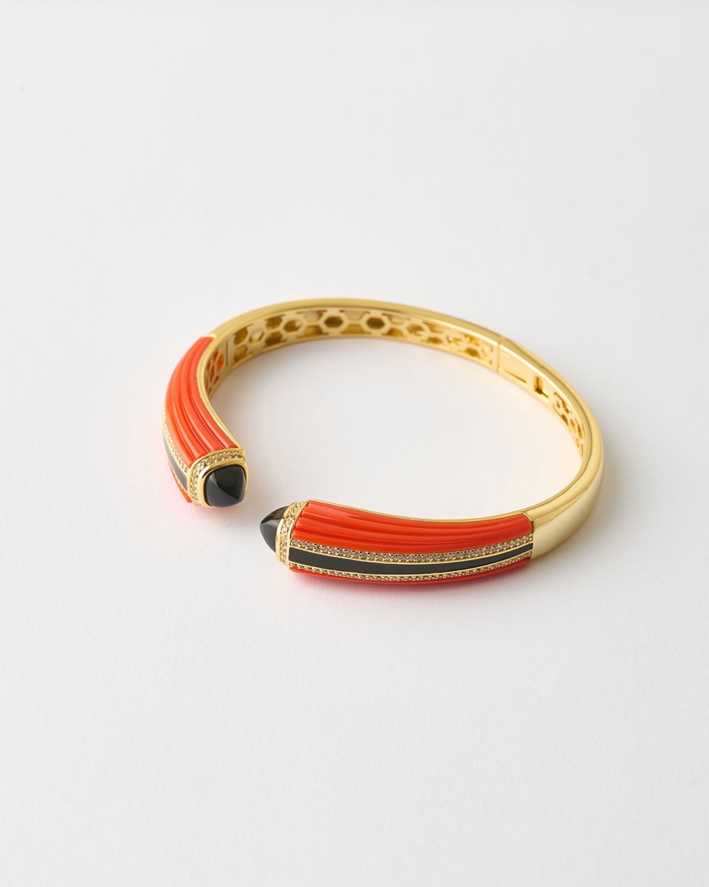 PULSERA PUNTA DIAMANTE ESMALTE BICOLOR NARANJA Y NEGRO