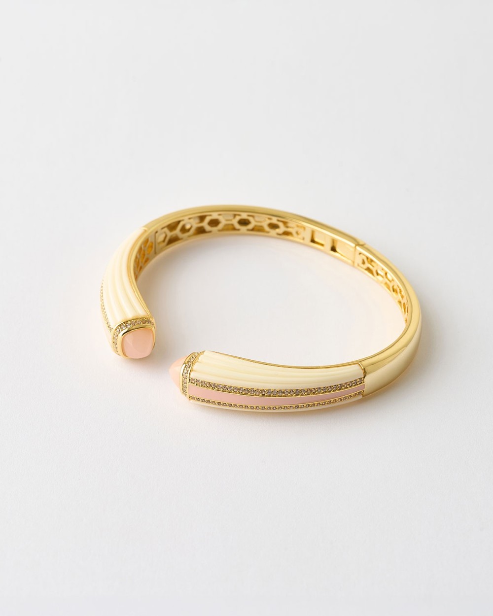 PULSERA PUNTA DIAMANTE ESMALTE BICOLOR ROSA Y BLANCO