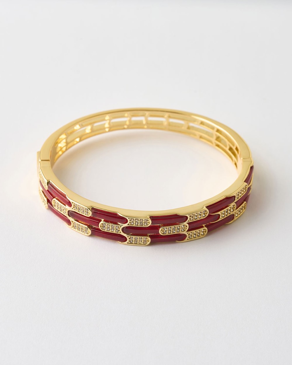 PULSERA MOSAICO ESLABONES ESMALTE ROJO Y CIROCNITAS