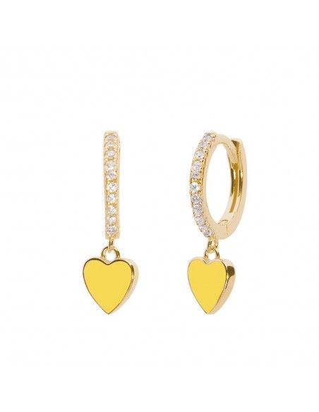 El Pendiente Crush es un pendiente de Plata de Ley con baño de Oro de 18 quilates y circonitas blancas. Este pendiente de corazón de esmalte hará que todos los ojos se queden en ti. Escoge tu color favorito. Queda perfecto en cualquier perforación del lóbulo. Pon dos colores distintos seguidos para conseguir un look divertido y veraniego.- Evitar usar productos como colonias, cremas o productos de limpieza sobre las joyas, puede hacer que pierdan su brillo o se oscurezcan.
