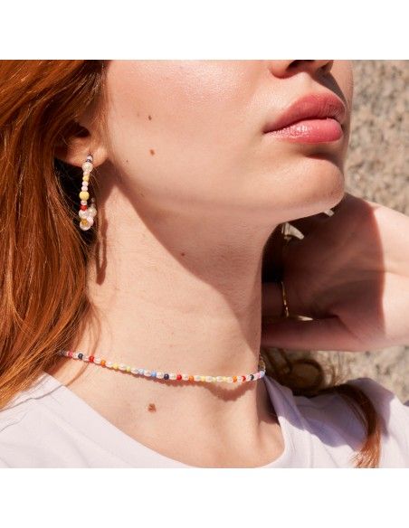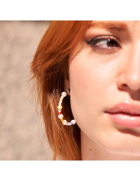 El pendiente Gum, fabricado en acero quirúrgico con baño de oro de 18 quilates es perfecto para cualquier ocasión. Cómodo, práctico y muy bonito, al ser multicolor queda bien con todo. ¡No te puedes quedar sin ello! Además, es muy combinable con otros pendientes más pequeños. Al ser de acero quirúrgico, es hipoalergénico, perfecto para todo el mundo.- Evitar usar productos como colonias, cremas o productos de limpieza sobre las joyas, puede hacer que pierdan su brillo o se oscurezcan.