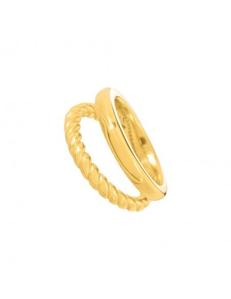 El anillo Bake está fabricado en Acero Quirúrgico Hipoalergénico con Baño de Oro de 18 quilates. Con él parecerá que has hecho una gran combinación de dos anillos, cuando solo llevas uno. A nosotras nos gusta para el dedo anular o índice.- Evitar usar productos como colonias, cremas o productos de limpieza sobre las joyas, puede hacer que pierdan su brillo o se oscurezcan.