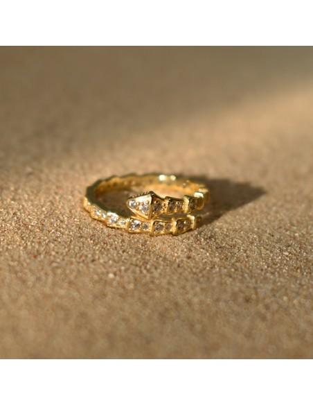 El anillo Poison está fabricado en Plata de Ley 925 con Baño de Oro de 18 quilates. Esta pieza te trasladará al Antiguo Egipto con su forma de septiembre. Nos parece un acierto para combinar con otros anillos que lleven circonitas. ¡Tu mejor amiga va a alucinar cuando te lo vea!- Evitar usar productos como colonias, cremas o productos de limpieza sobre las joyas, puede hacer que pierdan su brillo o se oscurezcan.
