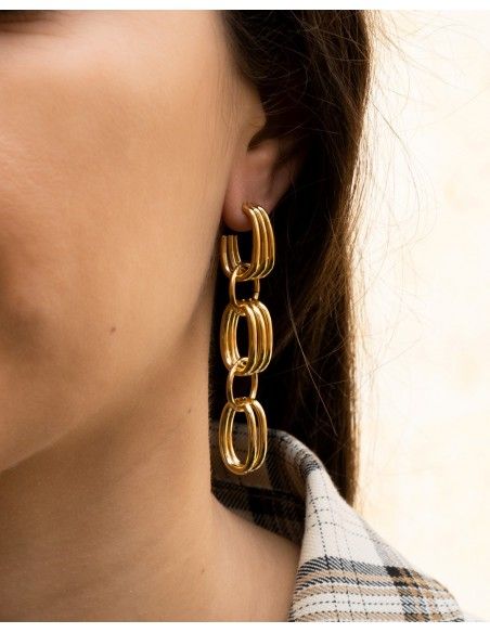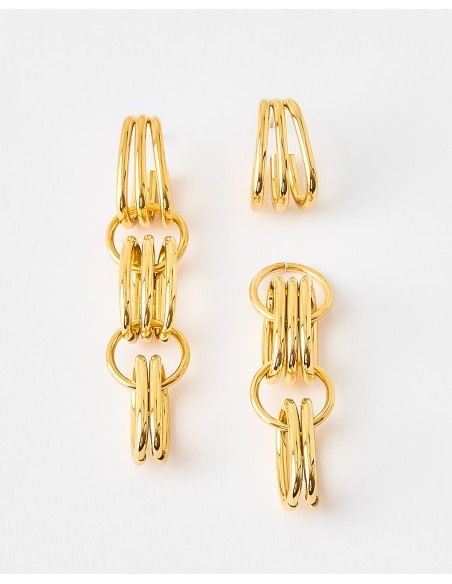 El pendiente Revolve está fabricado en Acero Quirúrgico y es un todo terreno. Puedes llevarlo largo con todos los eslabones o solo con uno. Su facilidad de multiposición es perfecta para que los puedas llevar a trabajar o de fiesta. ¡Son una pasada!- Evitar usar productos como colonias, cremas o productos de limpieza sobre las joyas, puede hacer que pierdan su brillo o se oscurezcan.