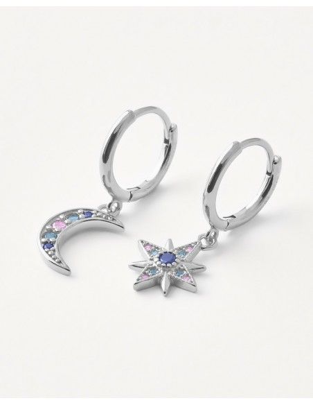 Los pendientes Sailor son un par de pendientes asimétricos inspirados en la Estrella Polar y la Luna que guía. Están fabricados en Plata de Ley con Baño de Rodio para que no se oscurezcan.Sus circonitas sapphire, rose pink y swiss blue los convierte en un modelo único y especial.