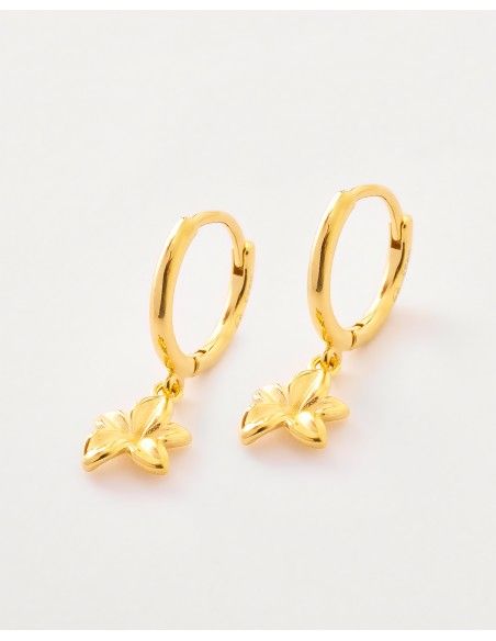 El Pendiente Plumeria es una arito de Plata de Ley con Baño de Oro de 18 quilates. Es perfecto para la primera perforación como par, pero también queda genial en segunda o tercera perforación.Está inspirado en un jardín mágico de Honolulu, siendo la Plumeria la flor más representativa de éste.
