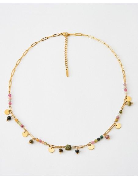 El Collar Sand es un collar precioso para combinar con otros collares más cortos o algun colgante más largo.Está fabricado en Acero Quirúrgico 316L hipoalergénico con baño de Oro IP, lo que lo hace un collar súper resistente y que va genial a personas con alergia a otros metales. Además, su cadena paperclip hace que sea muy fácil de ajustar a una medida más corta para quien quiera utilizarlo como gargantilla corta.