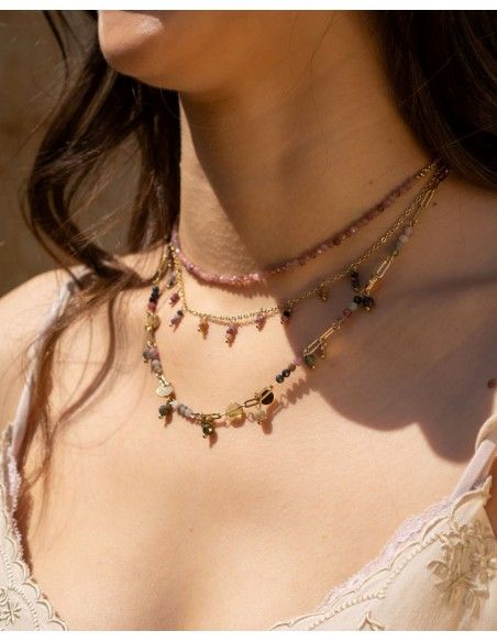 Es un básico que va bien con cualquier joya o look que lleves porque las piedras naturales, como las turmalinas combinan con cualquier look.