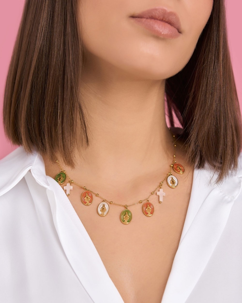 COLLAR ACERO 7 MEDALLAS VIRGEN DE LA MILAGROSA