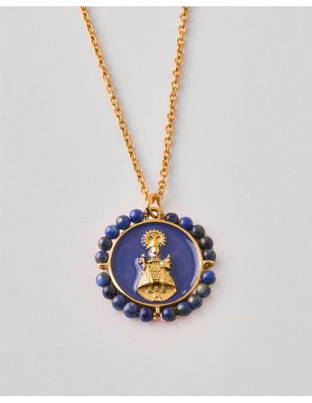 Collar Acero Medalla Virgen De Covadonga 20mm Piedras 3mm