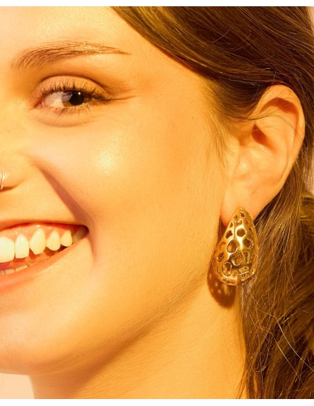 PENDIENTE LAGRIMA PERFORADO HUECO ACERO
