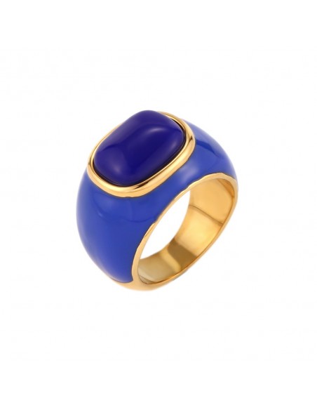 ANILLO ACERO MINERAL LAPISLÁZULI SÍMIL Y ESMALTE