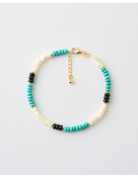 PULSERA CUENTAS BOHO TURQUESA 19M LARGO