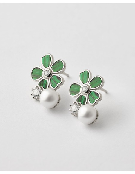 PENDIENTES FLOR MALAQUITA 10MM - PERLA 5MM