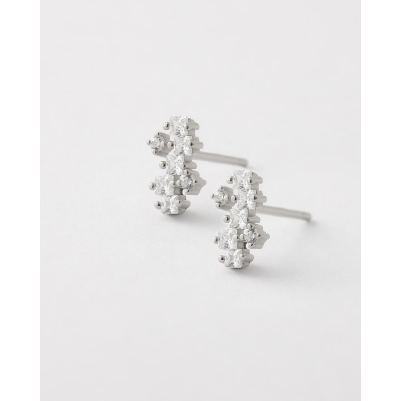 PENDIENTE UNIDAD MINI CIRCONITAS DOBLE FLOR PLATA RH