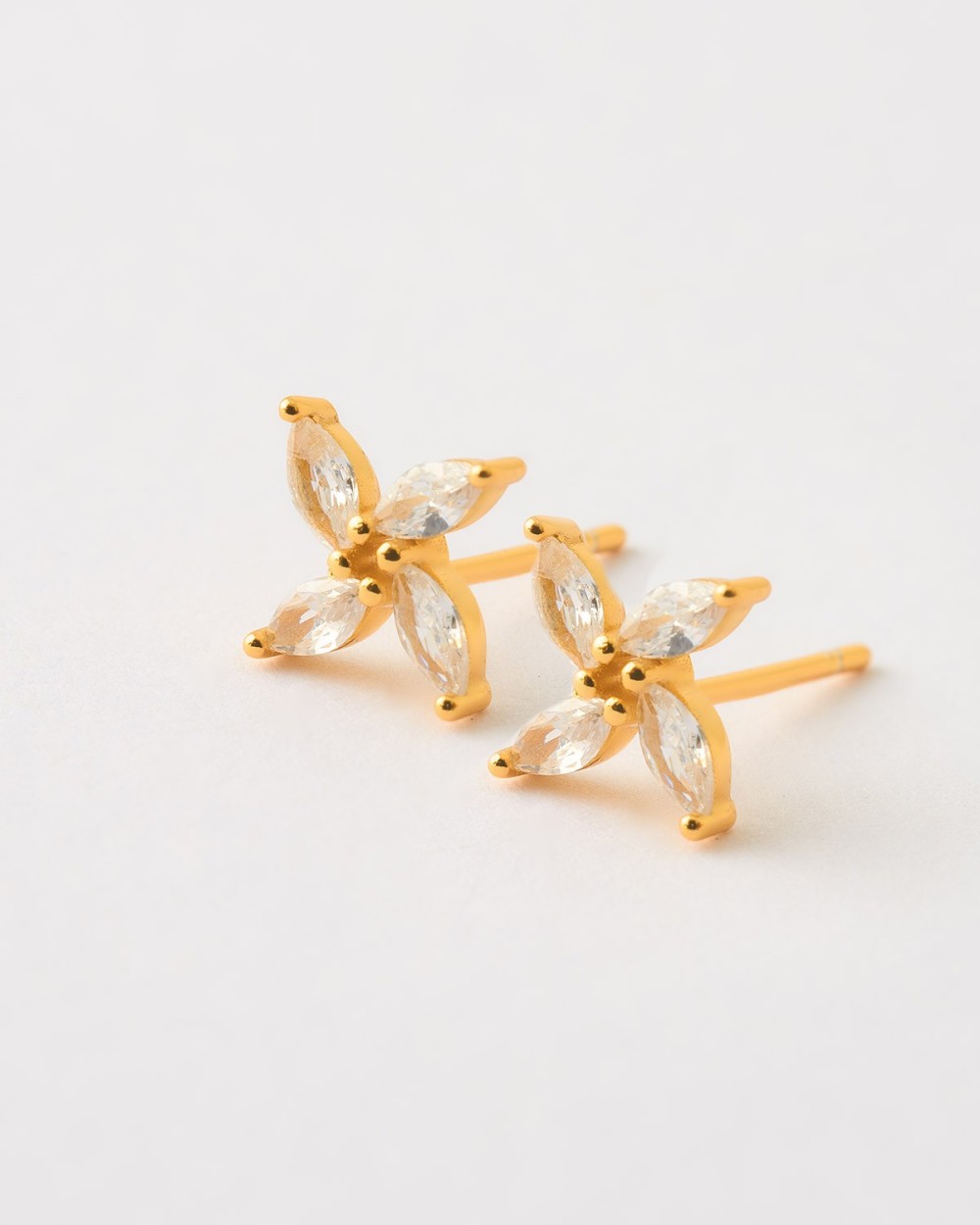 PENDIENTE UNIDAD MINI FLOR 4 PETALOS CIRCONITAS PLATA DO