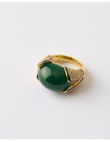 ANILLO CABUJON OVALADO ESMALTE VERDE Y CIRCONITAS
