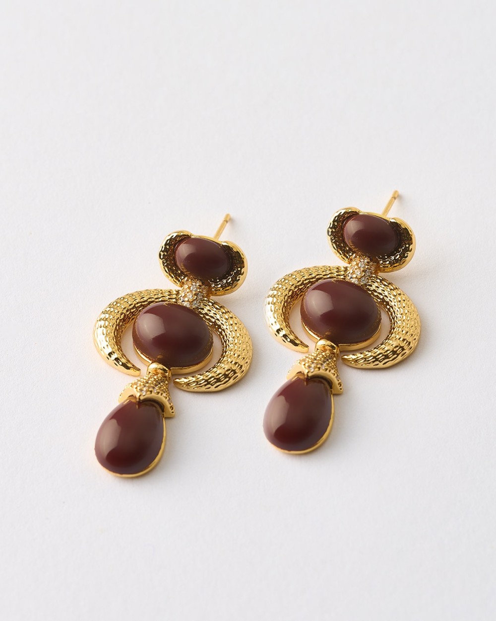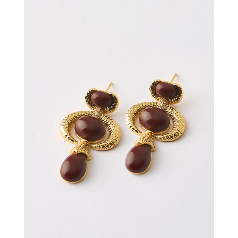 PENDIENTES MEDIA LUNA ESMALTE CHOCOLATE OVALADO Y LAGRIMA