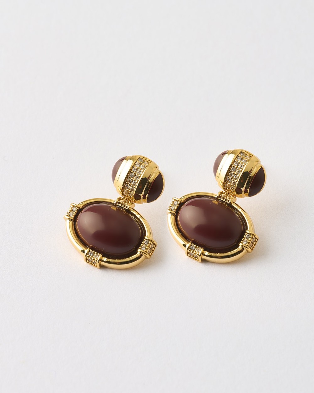 PENDIENTES ESMALTE CHOCOLATE OVALADOS DOBLE Y CIRCONITAS