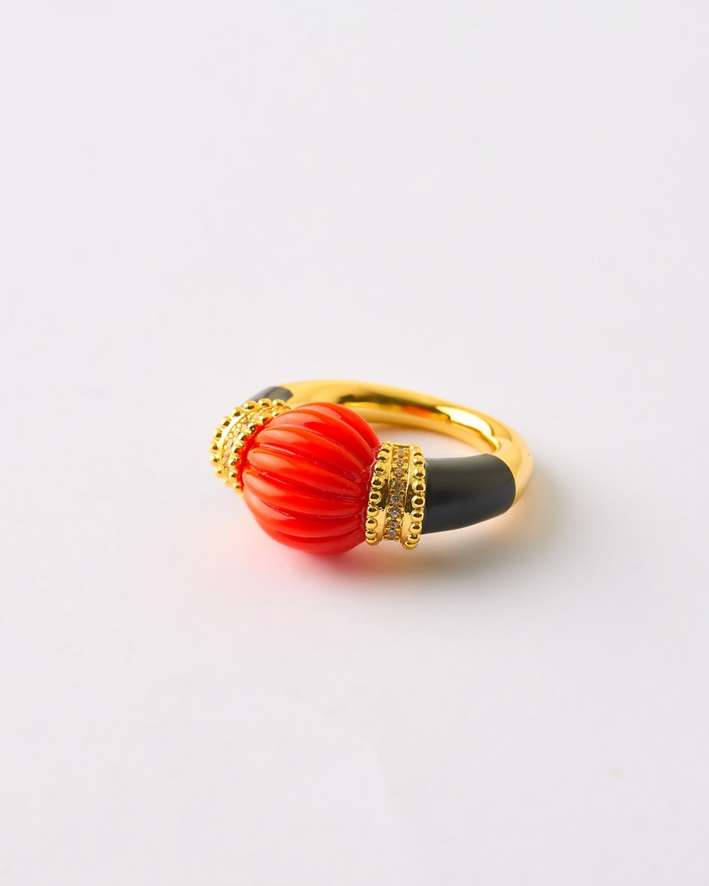 ANILLO ESMALTE CONCHA NARANJA Y NEGRO CIRCONITAS