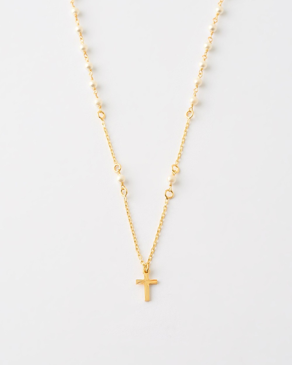 COLLAR PERLAS 3MM Y CRUZ 10X7MM - 40+5CM LARGO