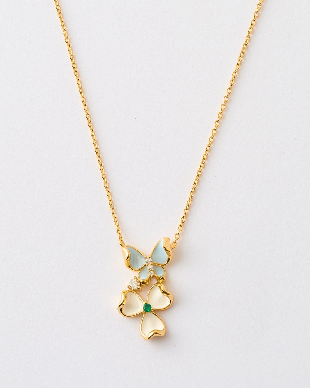 COLLAR FLOR Y MARIPOSA ESMALTE 21X12MM