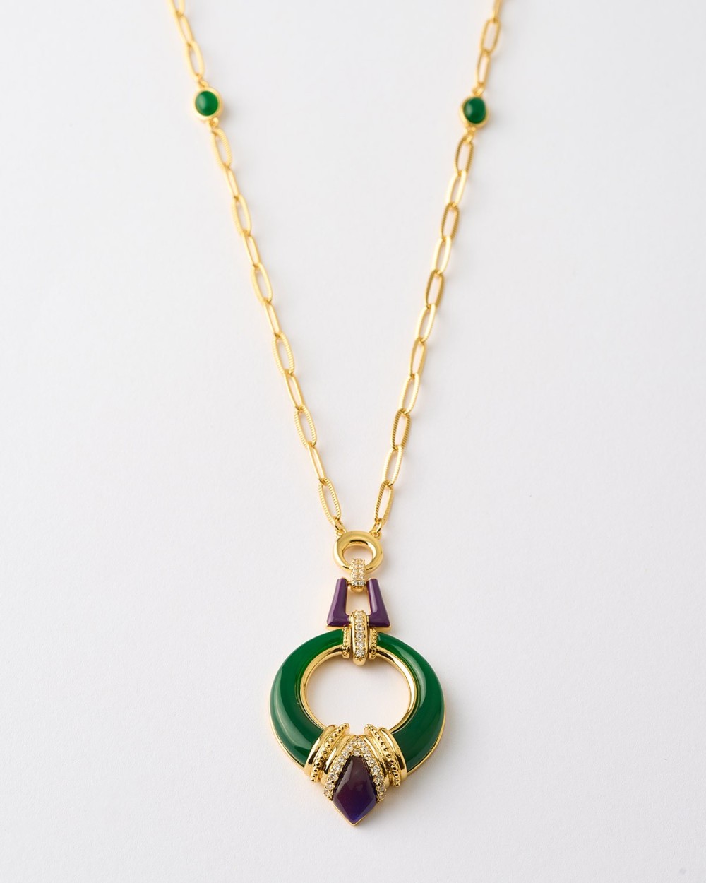 Collar Circulo Punta De Flecha Esmalte Verde y Azul Circonitas Laton