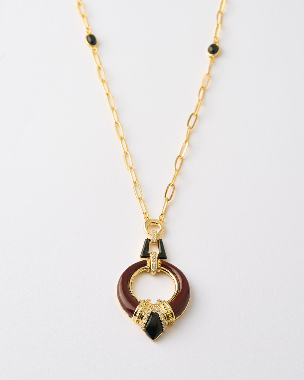 Collar Circulo Punta De Flecha Esmalte Chocolate y Negro Circonitas Laton