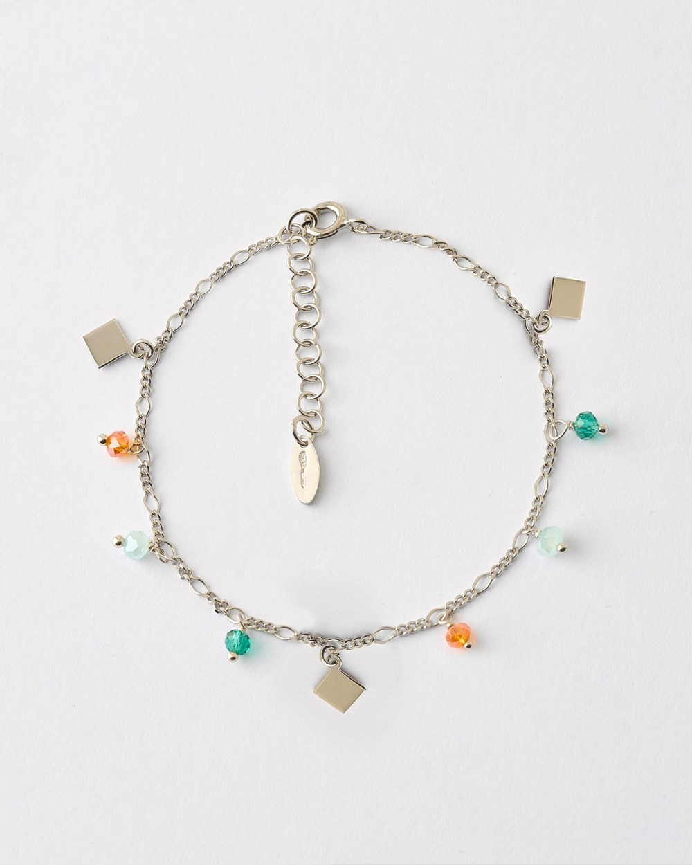 PULSERA ROMBOS Y CRISTALES MULTI 18.5CM LARGO