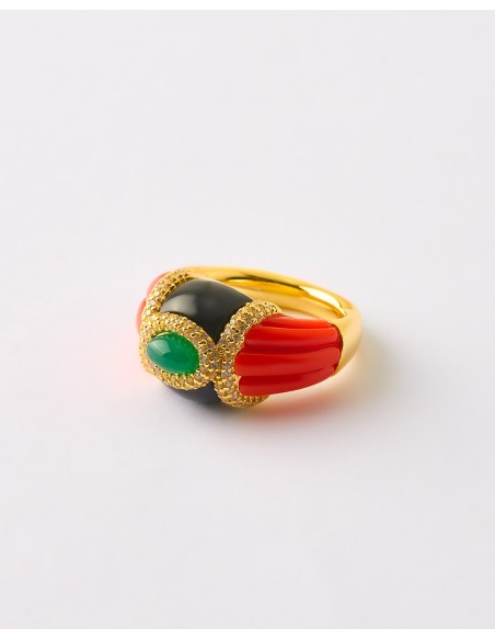 ANILLO ESMALTE NARANJA Y NEGRO CIRCONITAS