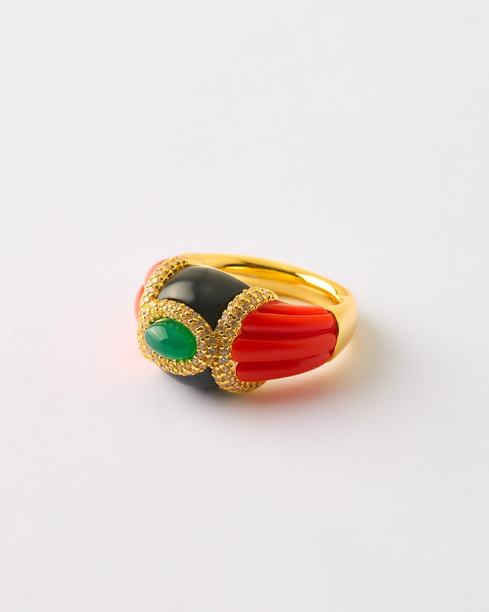 ANILLO ESMALTE NARANJA Y NEGRO CIRCONITAS