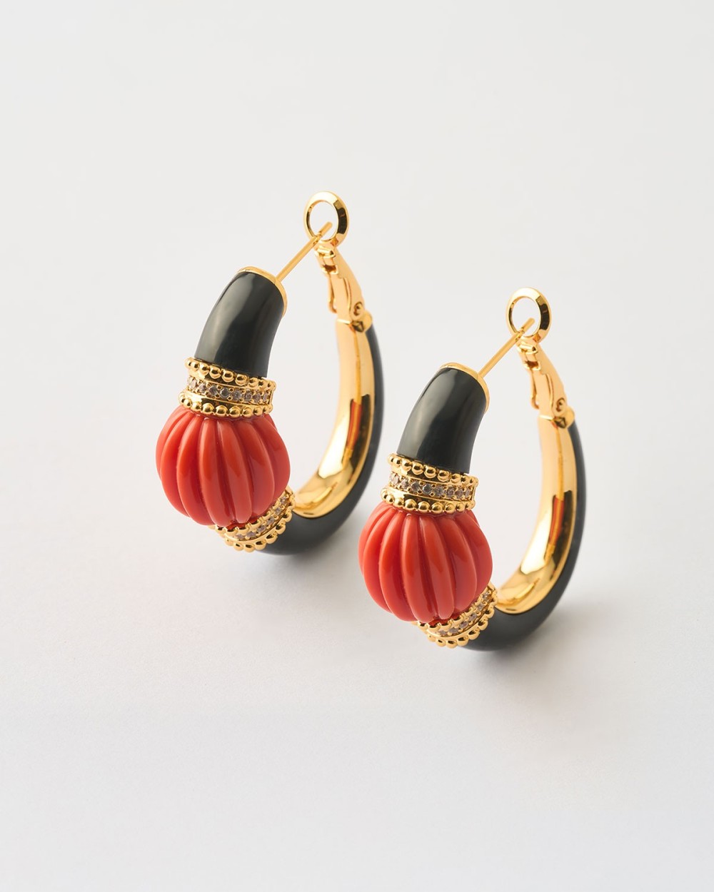 Pendientes Aro Ovalado 30mm Esmalte Naranja Y Negro Circonitas Laton