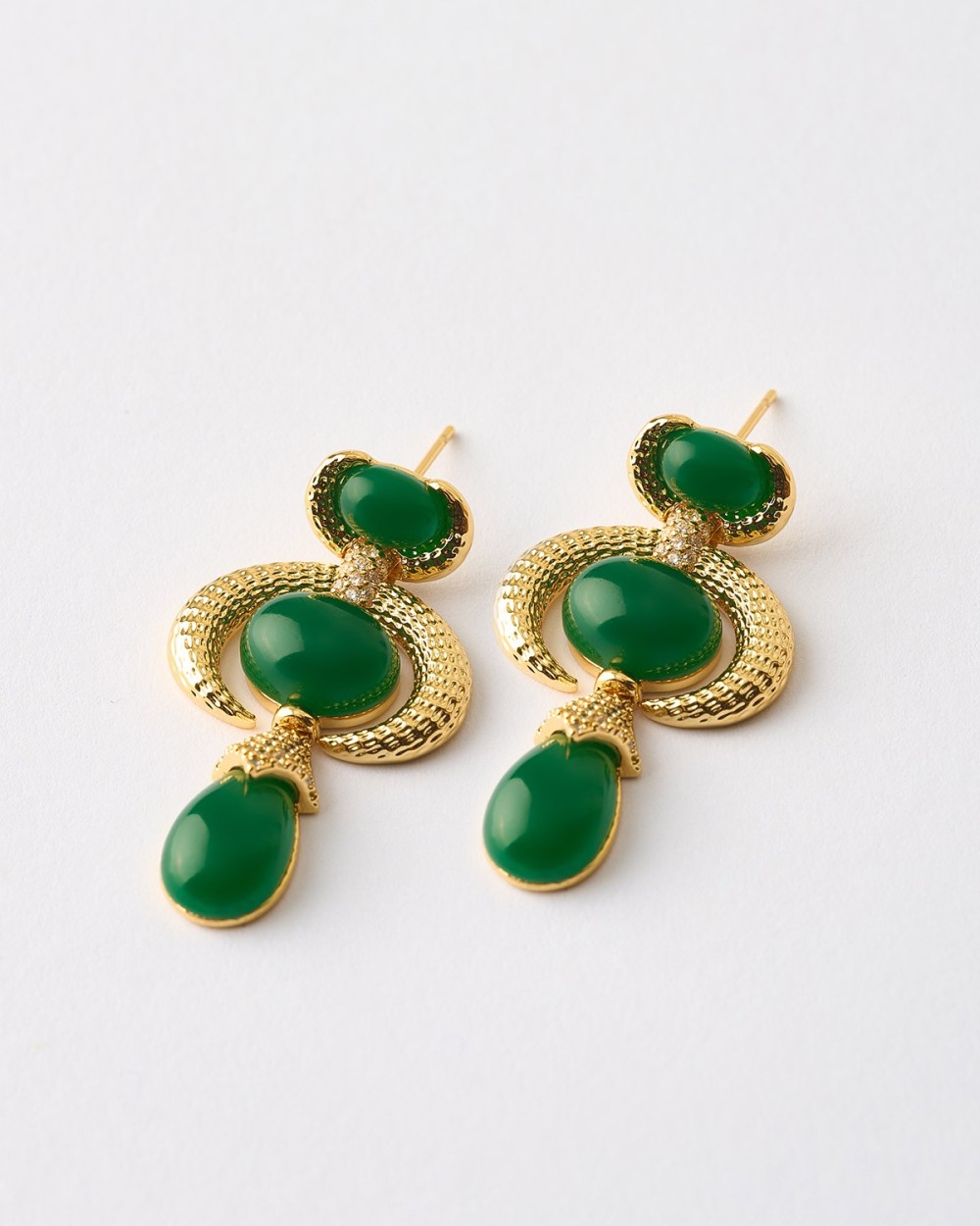 PENDIENTES MEDIA LUNA ESMALTE VERDE OVALADO Y LAGRIMA