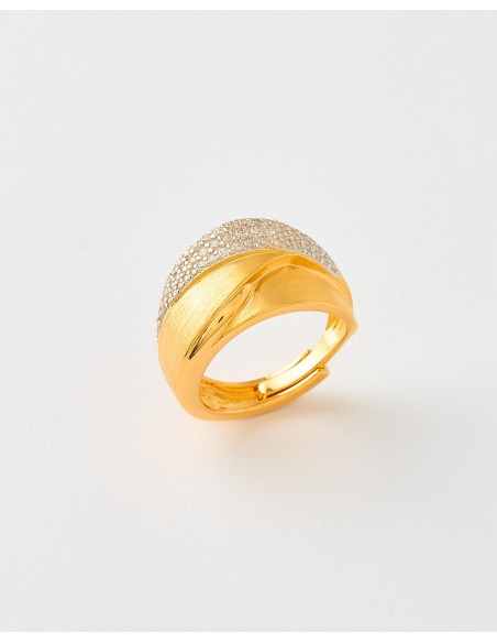 ANILLO 3 BANDAS MATE Y CIRCONITAS - TALLA AJUSTABLE