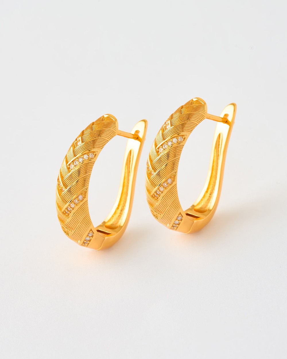 PENDIENTES ARO OVALADO 25MM TRENZADO EN ESPIGA Y CIRCONITAS