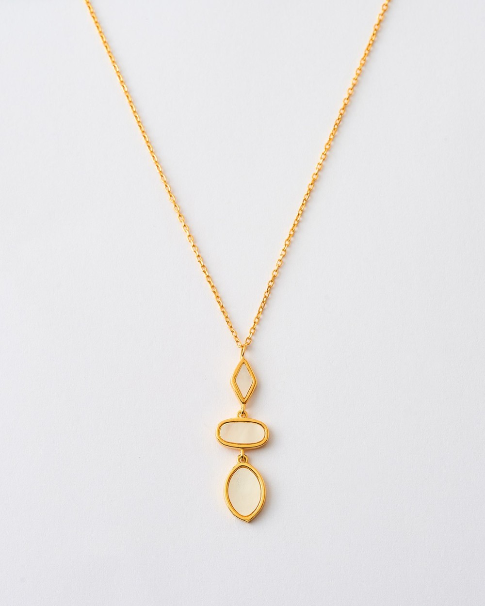 COLLAR COLGANTES ROMBO Y OVALOS MADREPERLA 35MM - 39+5CM LARGO