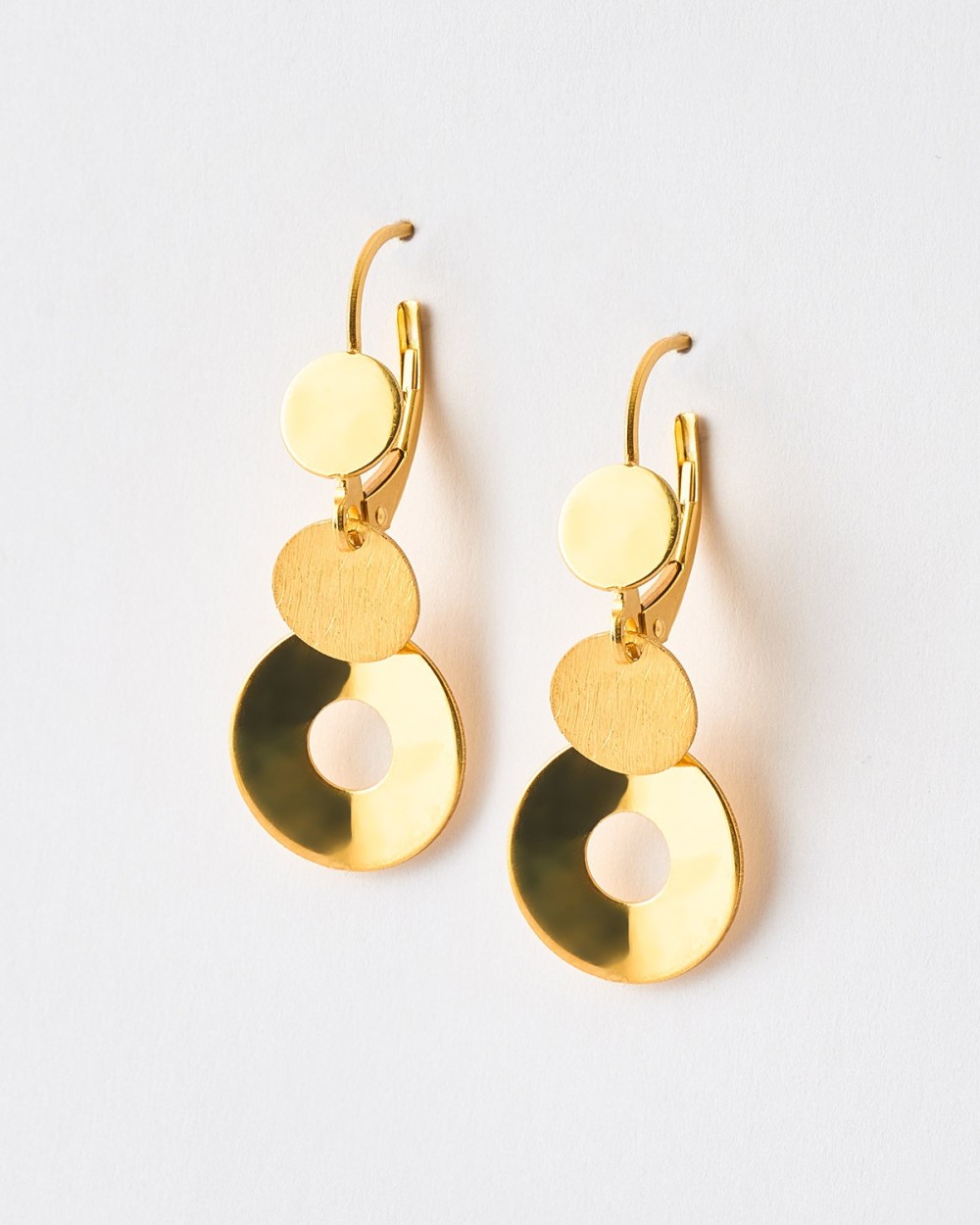 PENDIENTES TRIPLE CIRCULO LISO Y MATE...