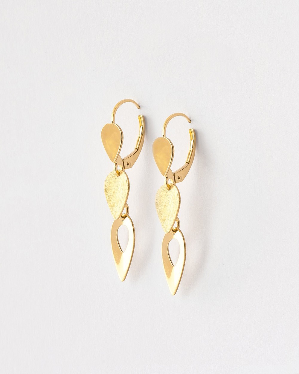 PENDIENTES TRIPLE LAGRIMA LISO Y MATE...