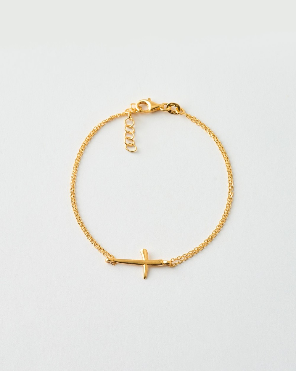 PULSERA CRUZ 15X10MM DOBLE CADENA - 17+2CM LARGO