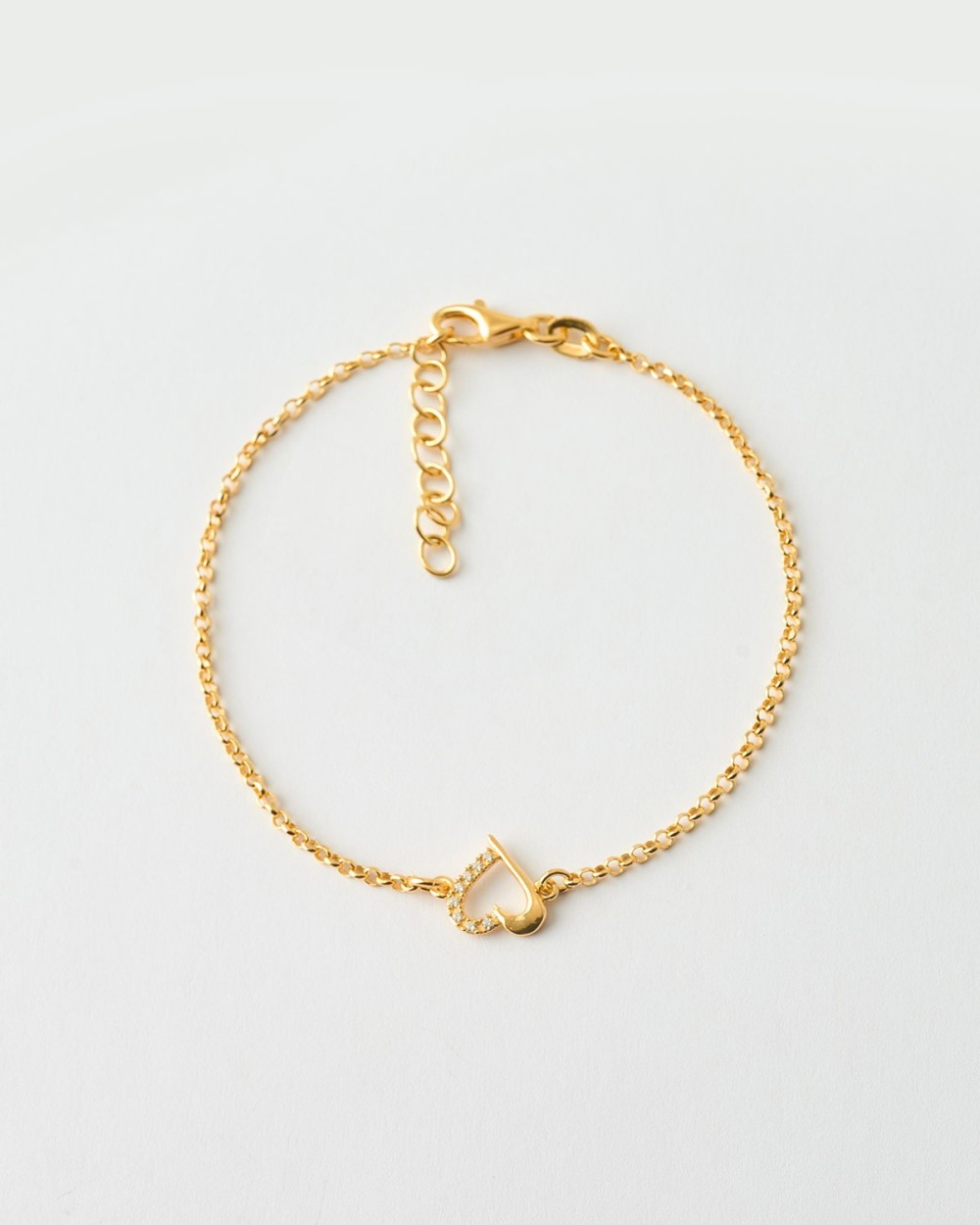 PULSERA CORAZON 9MM LISO Y CIRCONITAS - 17+2CM