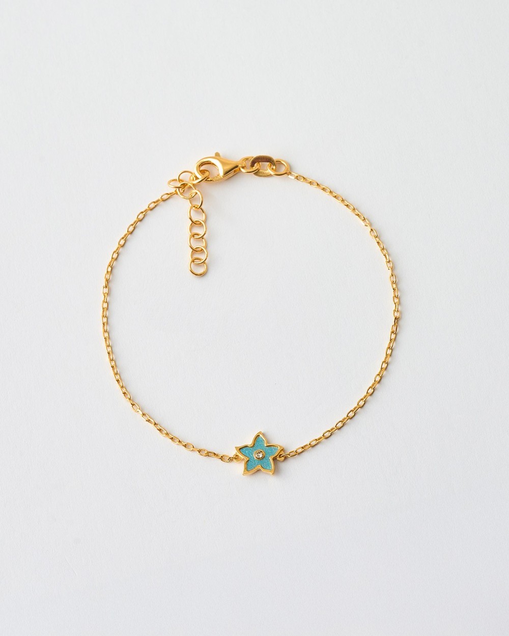 PULSERA FLOR 8MM MADREPERLA AZUL Y CIRCONITA - 17+2CM LARGO