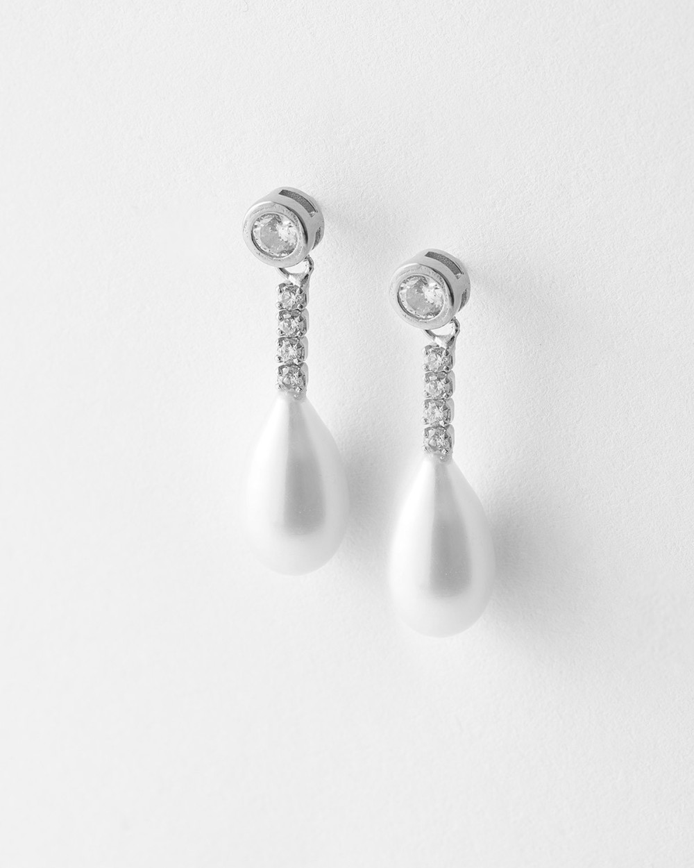 PENDIENTES TIRA CIRCONITAS Y PERLA 11X7MM - 20MM LARGO