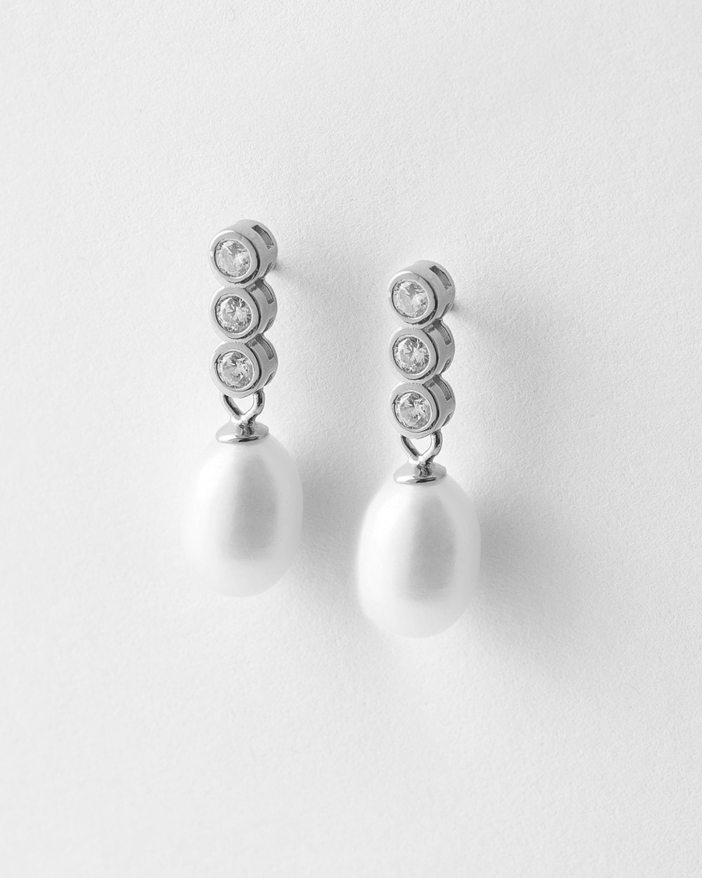 PENDIENTES 3 CIRCONITAS CHATON 2MM Y PERLA 11X7MM