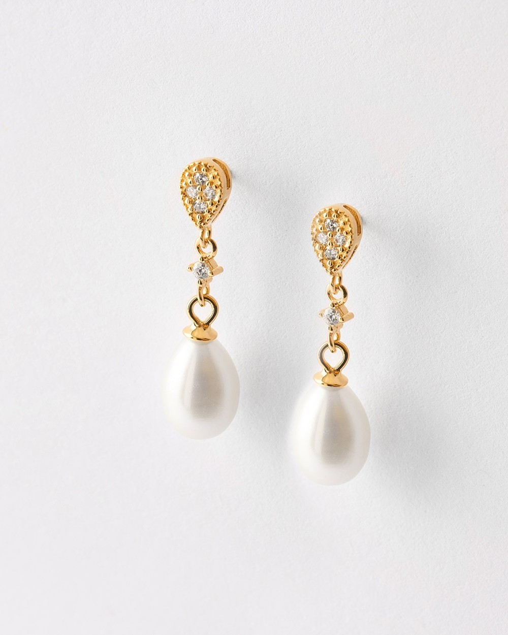 PENDIENTES LAGRIMA CIRCONITAS Y PERLA 11X7MM