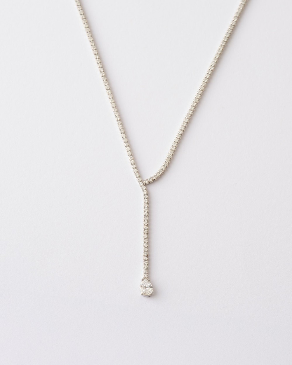 Collar Riviere Circonitas 2mm Colgante Lagrima Blanca7x5mm - 45+3cm largo Plata