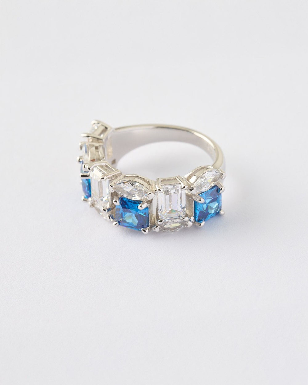 ANILLO DOBLE BANDA CIRCONITAS OVAL Y BAGUETTE ZAFIRO Y BLANCAS